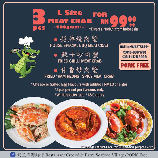 Crocodile Farm Seafood Village Restaurant Muslim-Friendly Chinese Restaurant in Taman Subang Ria Opening at 500 PM Place OrderFind TableCall 03-5635 1613Get directionsGet QuoteWhatsApp 03-5635 1613Message 03-5635 1613Contact UsView MenuMake Appointment Updates Posted on Jan 14 2022 春节外带优惠送送送 买𝟭送𝟯 对你没看错. Crocodile Farm Seafood Village.